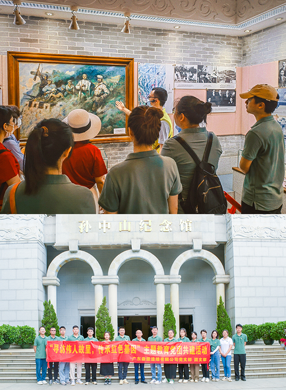 本次共建活動(dòng),森霖造綠黨支部與團(tuán)支部的同志們來到中山市的孫中山故居紀(jì)念館與中山詹園,重溫偉人成長(zhǎng)之路,體會(huì)愛國(guó)精神,學(xué)習(xí)傳統(tǒng)文化,傳承紅色基因。來到孫中山故居紀(jì)念館,同志們從圖片、書籍、史料等遺跡,近距離感受到了孫中山先生從出生、成長(zhǎng)、留學(xué)和領(lǐng)導(dǎo)民主革命的偉大歷程,全景式展現(xiàn)了孫中山先生為國(guó)為民,為振興中華而奮斗的一生。