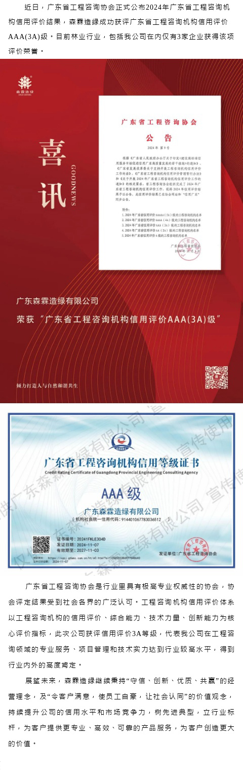 喜訊|我公司成功獲評廣東省工程咨詢機構信用評價AAA(3A)級