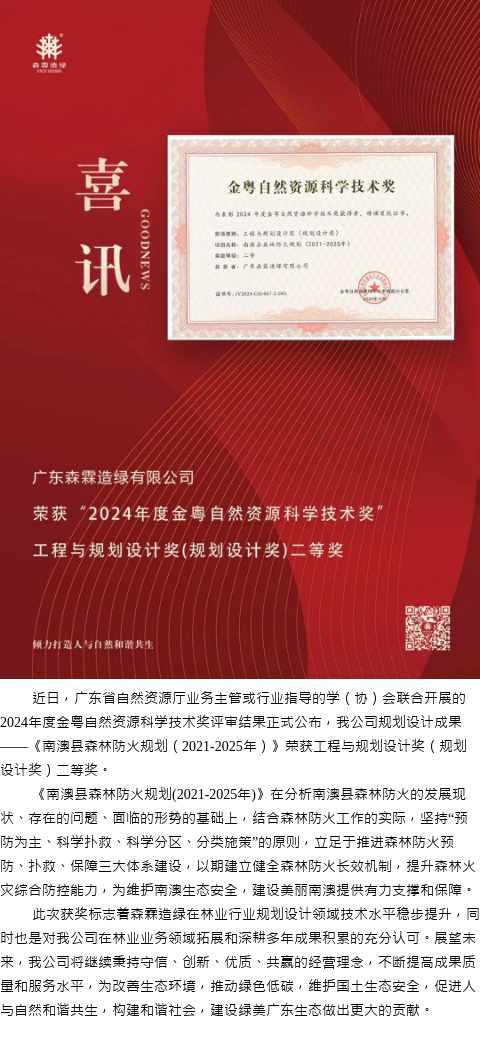 喜訊 | 我公司規劃設計成果榮獲2024年度金粵自然資源科學技術獎