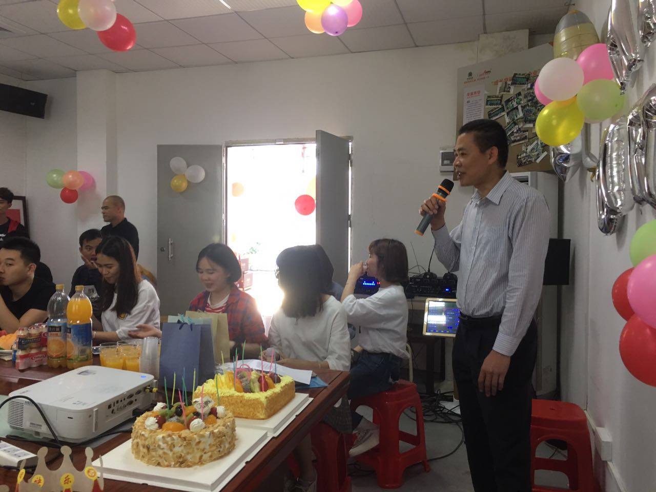 廣東森霖造綠有限公司于2017年4月28日舉辦了四月份員工生日會,我司總經理陳土榮為壽星送上祝福,生日會獲得圓滿成功!