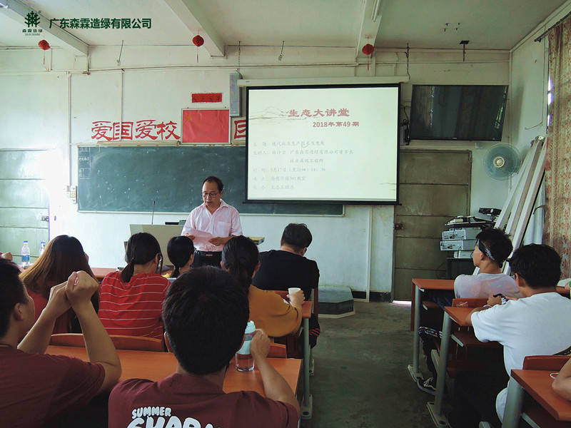 2018年5月17日下午,我司董事長、林業高級工程師林什全先生應邀參加廣東生態工程技術學院生態工程系2018年第49期生態大講堂專題講座并擔任主講嘉賓。 林什全董事長結合自己從事林業工作多年積累的經驗和豐富的閱歷,以“現代林業新技術與林業服務業”為主題,給學生講解及分析了許多林業方面的實操案例。