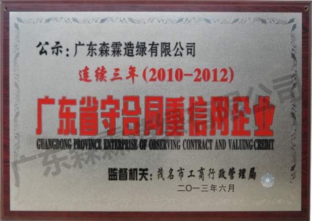 連續(xù)三年(2010-2012)廣東省守合同重信用企業(yè)
