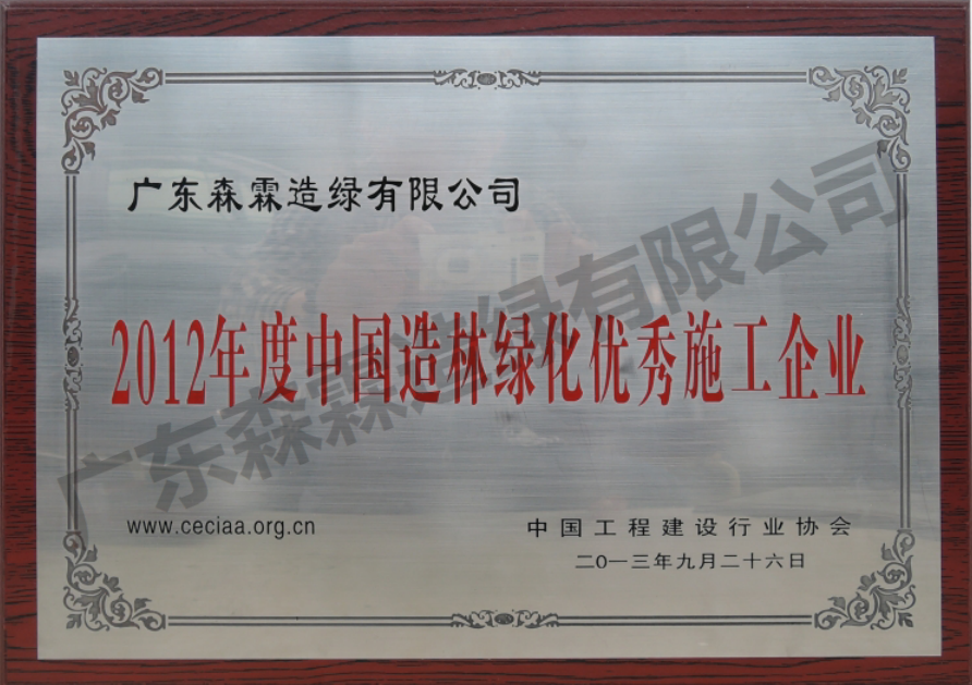2012年度中國(guó)造林綠化優(yōu)秀施工企業(yè)