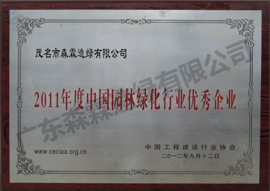 2011年度中國(guó)園林綠化行業(yè)優(yōu)秀企業(yè)
