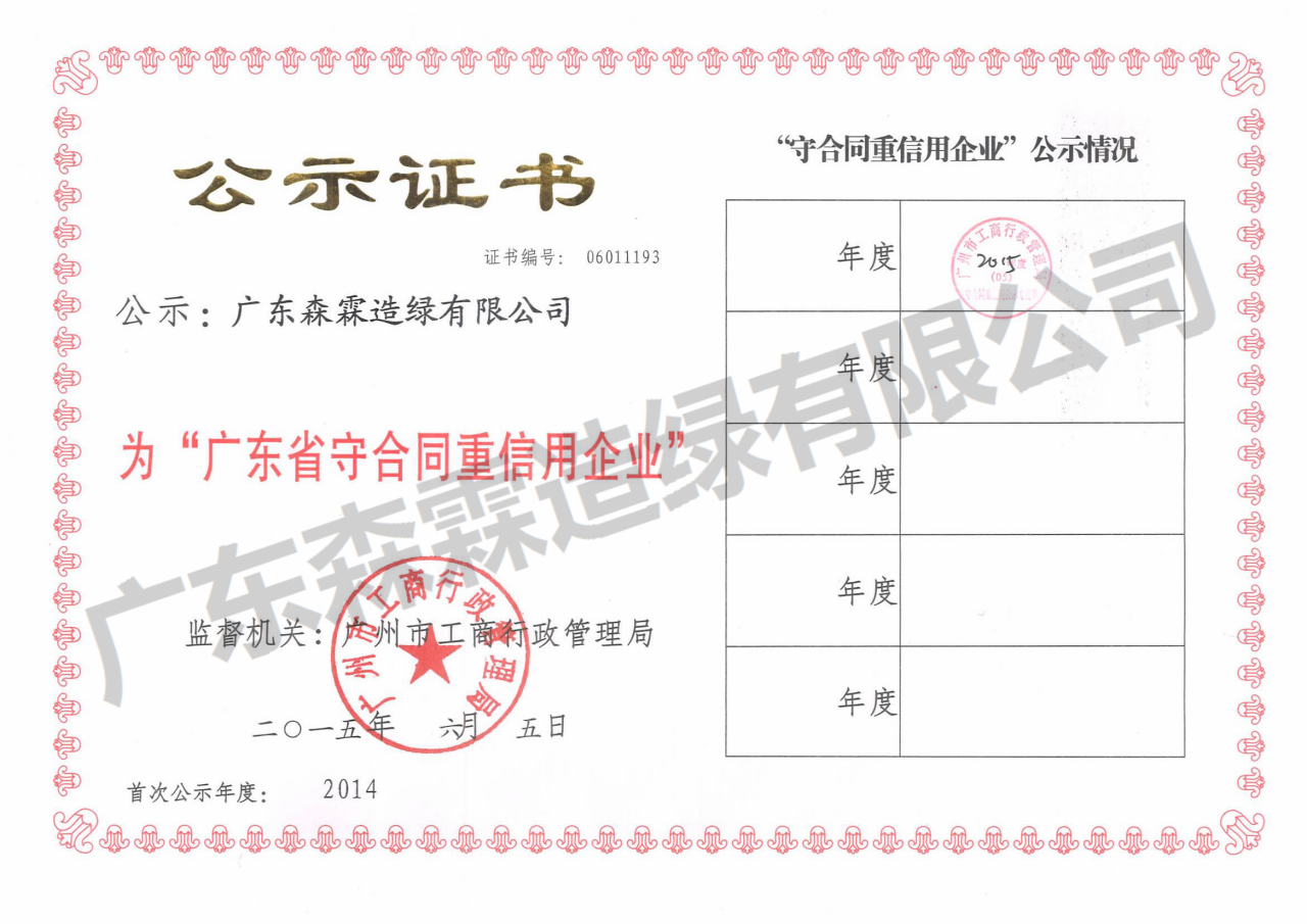 廣東省守合同重信用企業(yè)公示證書