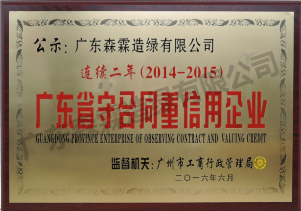 連續(xù)二年(2014-2015)廣東省守合同重信用企業(yè)