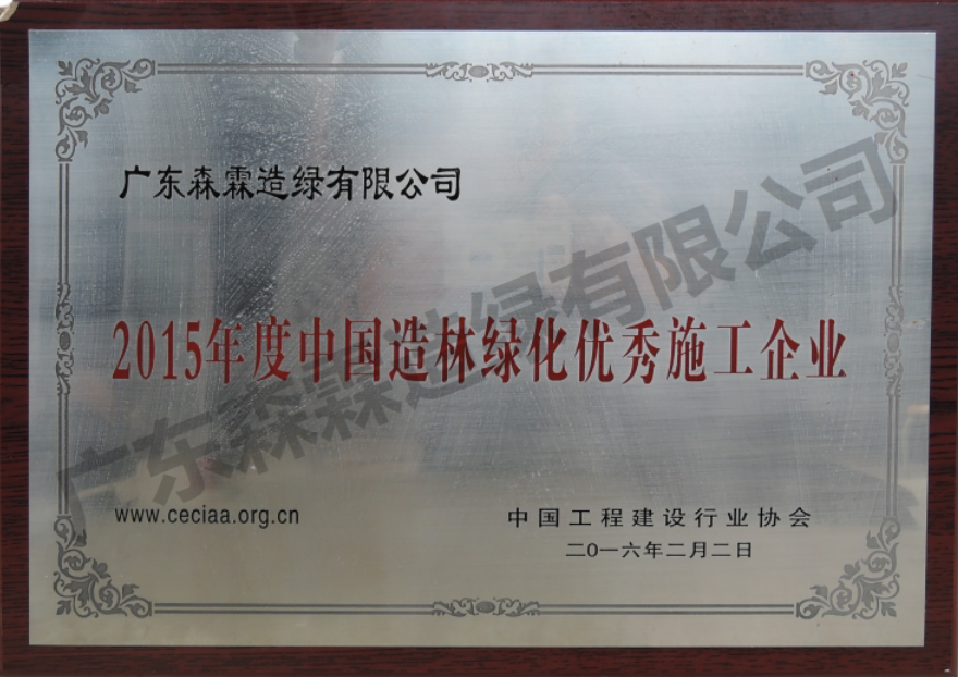 2015年度中國(guó)造林綠化優(yōu)秀施工企業(yè)