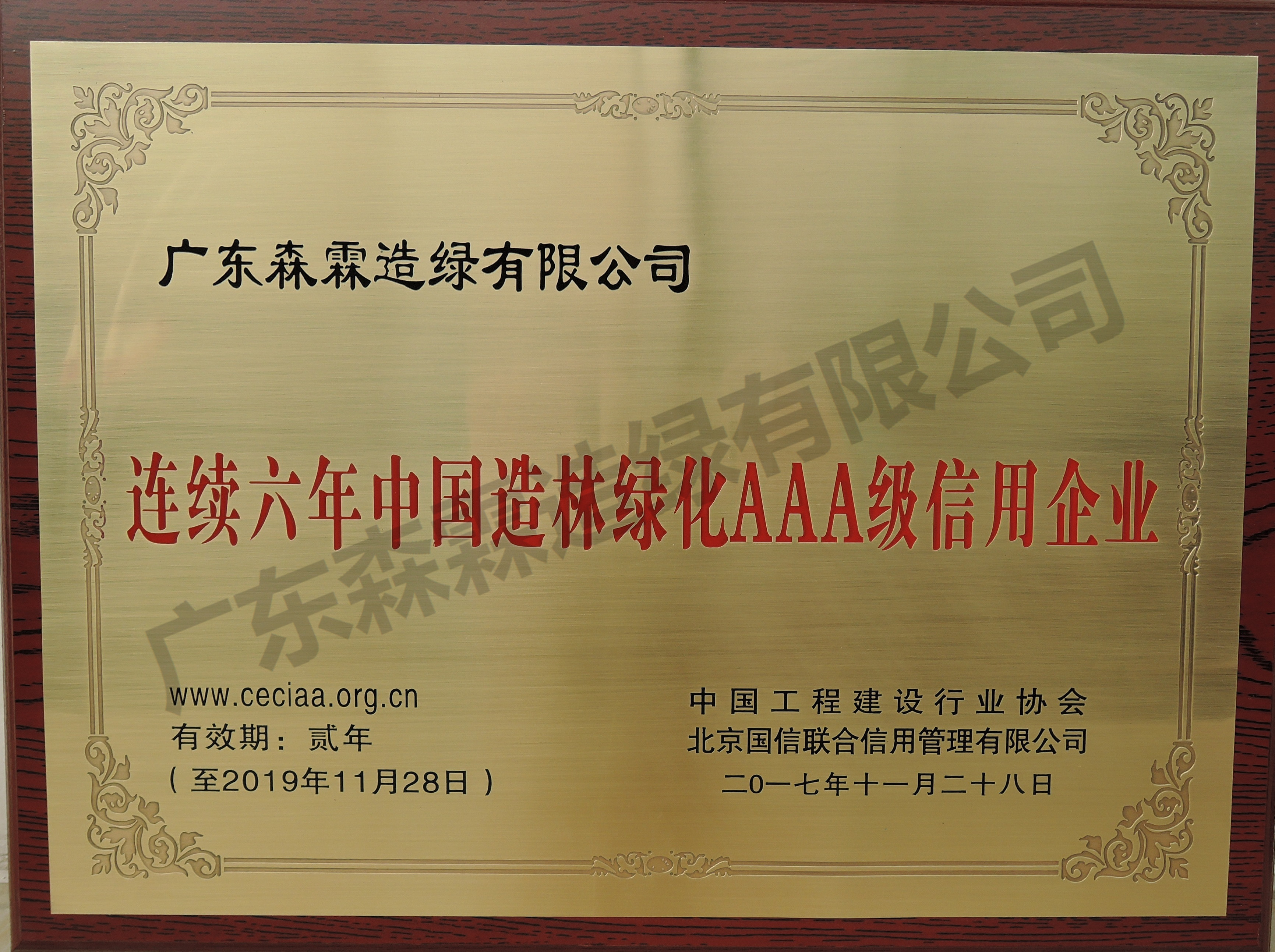 連續(xù)六年中國(guó)造林綠化AAA級(jí)信用企業(yè)